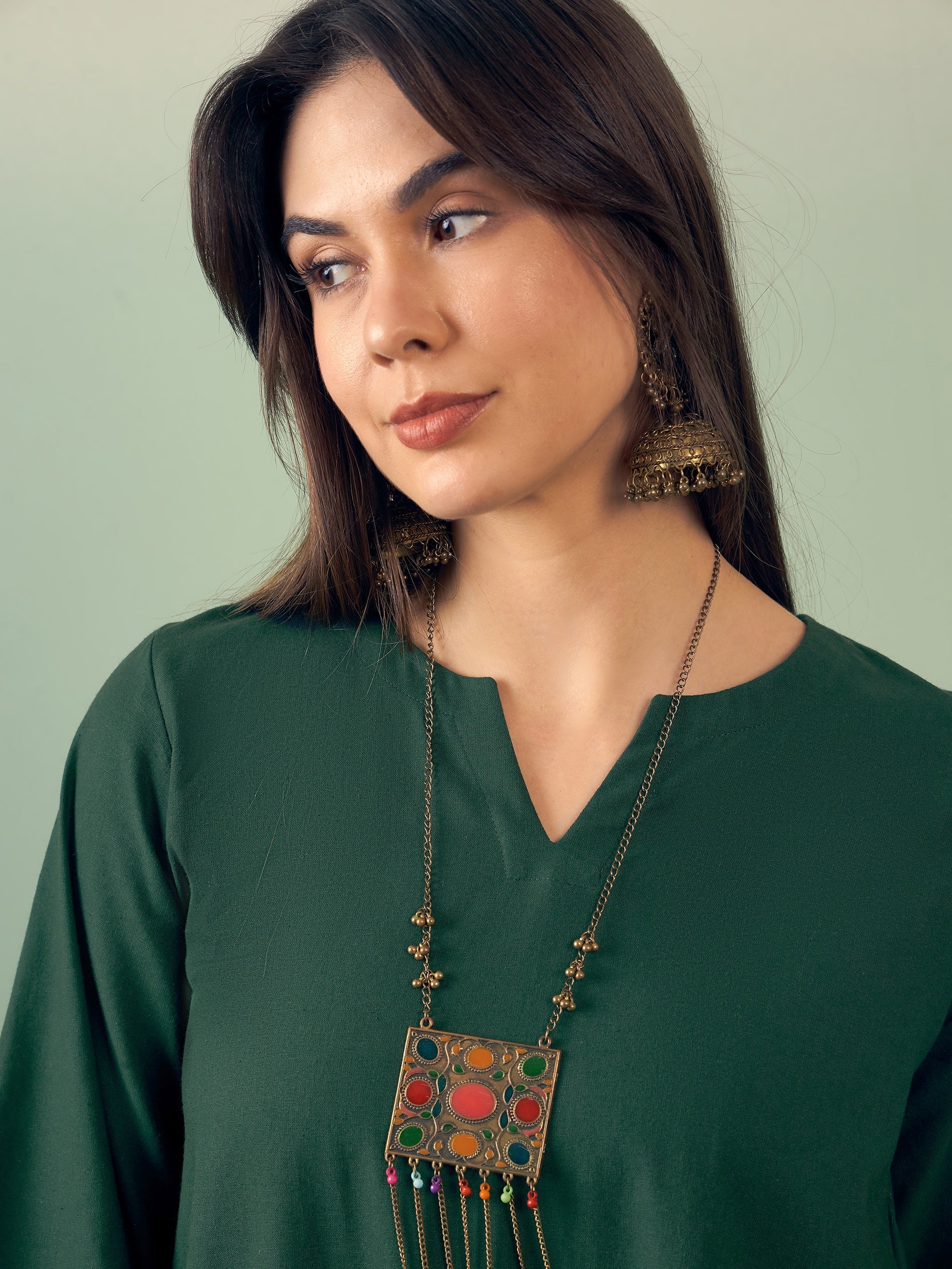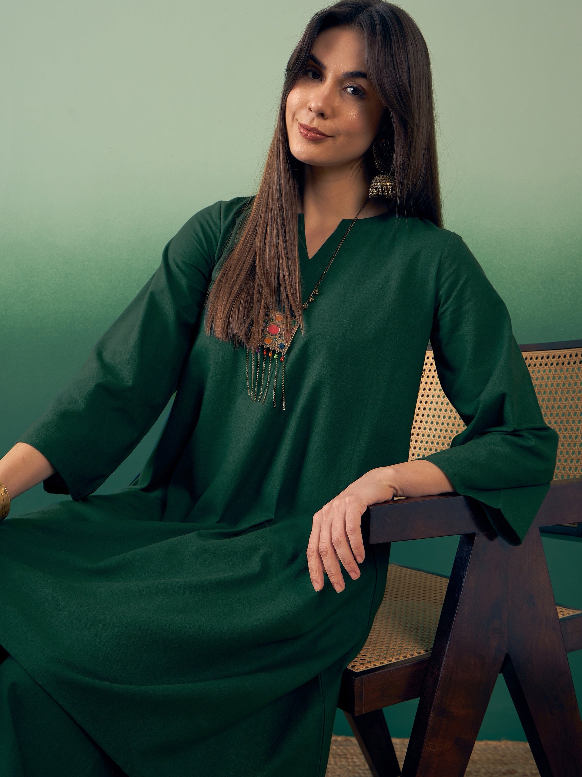 InWeave Dark Green Kurta Palazzo Set - Distacart