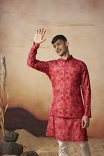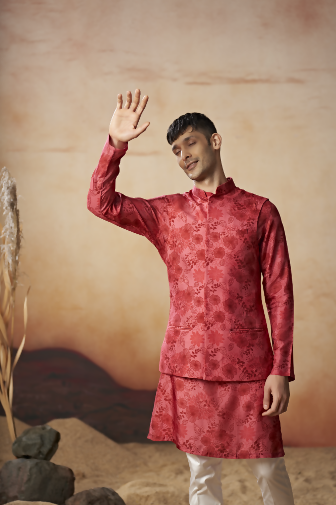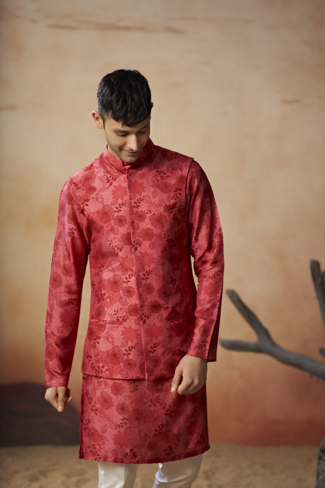 The Floral print silk nehru jacket set is Made from premium Russian Silk, this kurta offers an unparalleled luxurious feel. Known for its smooth, soft, and subtle texture, Russian Silk enhances the beauty of the floral print, bringing each detail to life. The fabric is breathable and lightweight, making it ideal for warm desert climates or any outdoor setting. Experience the perfect blend of elegance and comfort with this refined fabric, designed to keep you cool and relaxed while looking chic.
