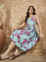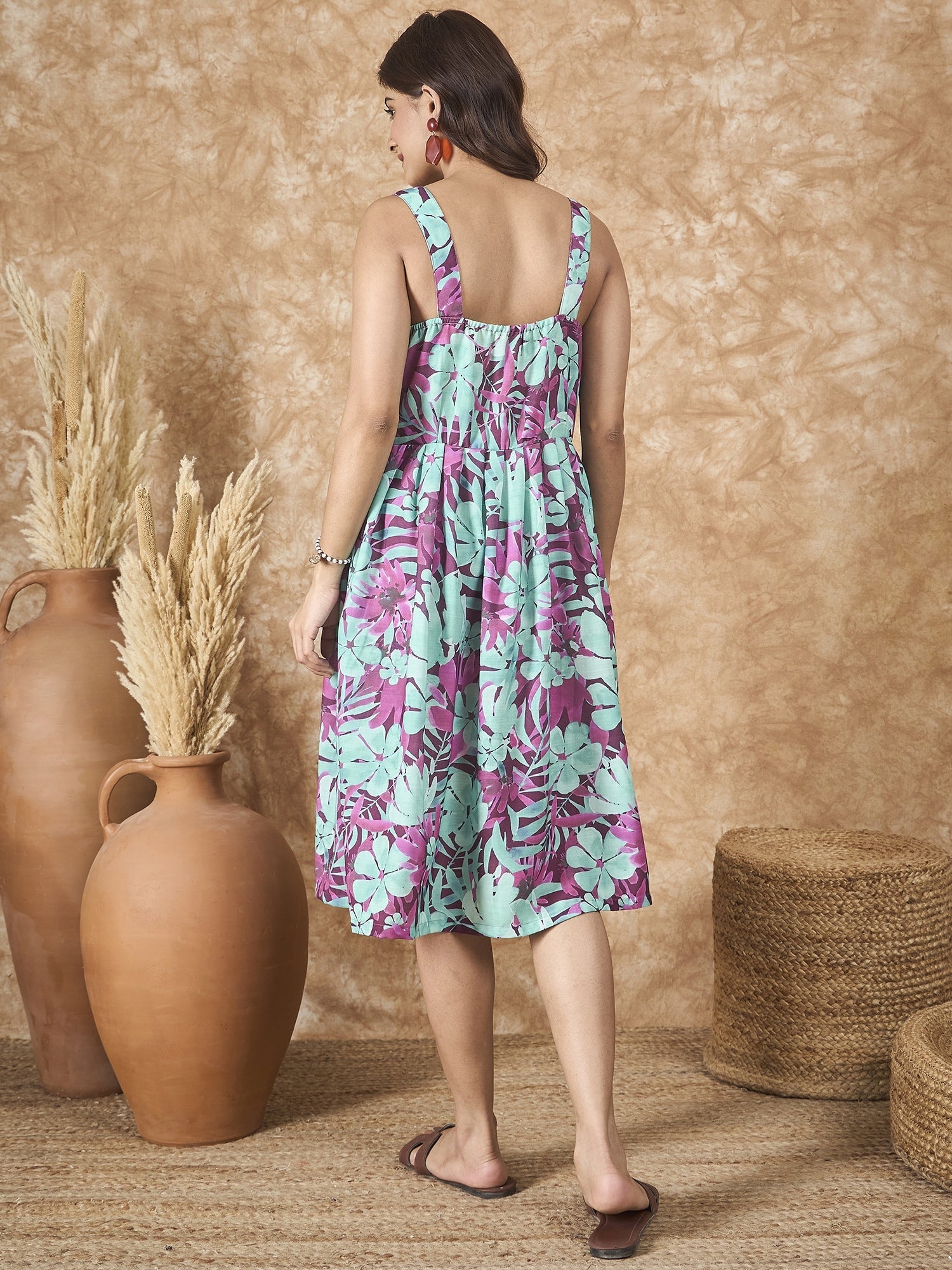 InWeave Green Purple Print Sweetheart Dress - Distacart