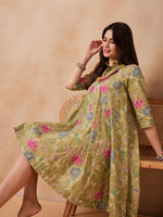 InWeave Light Lime Green Floral Printed Flared Dress - Distacart