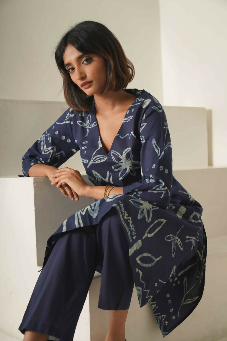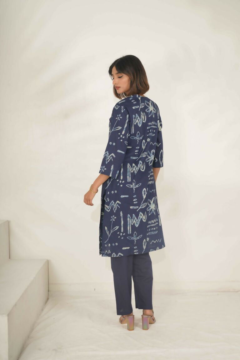 Miravan Women's Abstract Printed Cotton Blue Co-Ord SetJazz up your look with this blue co-ord set from Miravan. Tailored from cotton, the Kurti is...