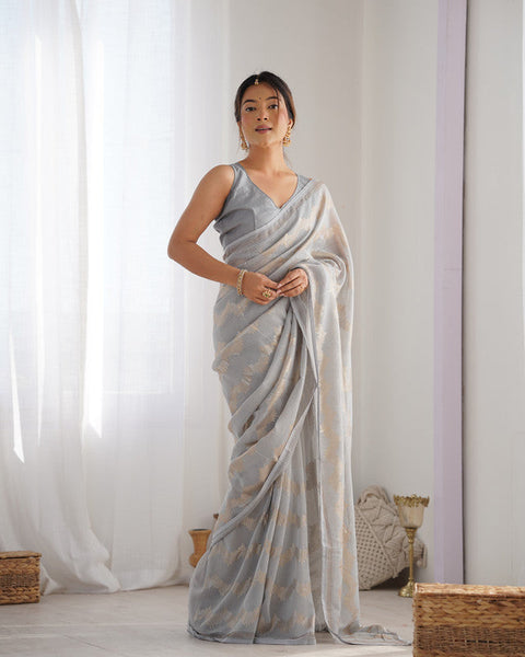 NOZ2TOZ Sequence Georgette Grey Saree With Unstitched Blouse Piece - Distacart