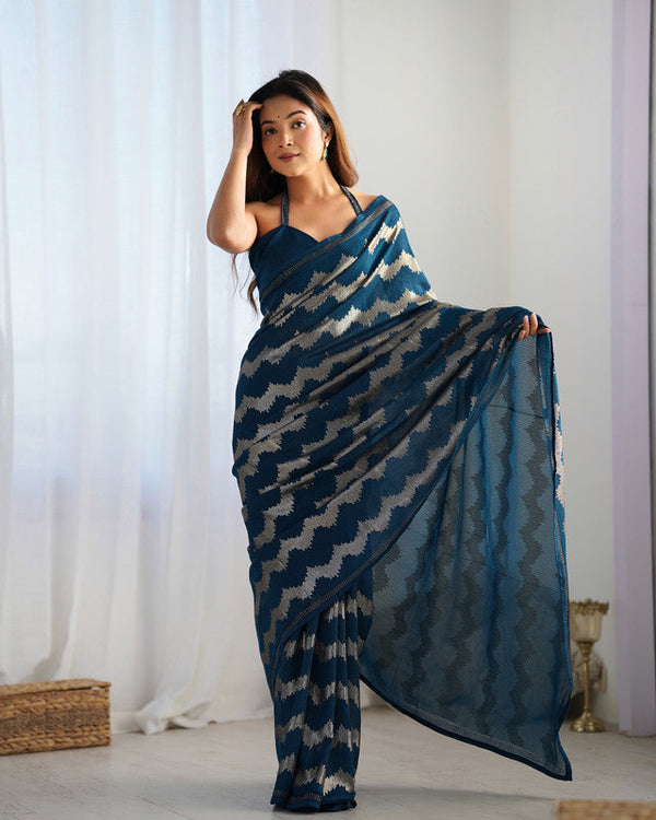 NOZ2TOZ Sequence Georgette Petrol Saree With Unstitched Blouse Piece