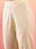 InWeave Yellow Striped V Neck Lace Front Slit Kurta Pant Set