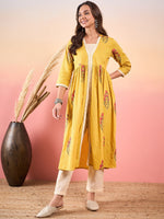 InWeave Yellow Striped V Neck Lace Front Slit Kurta Pant SetThe Set is crafted from best of Indian fabrics. Style it with Oxidised jewelery and jut...