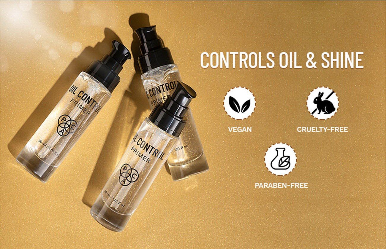 PAC Oil Control Primer - Infused with 24K Gold Leaf Extracts, Controls Oil & Shine Minimizes Pores