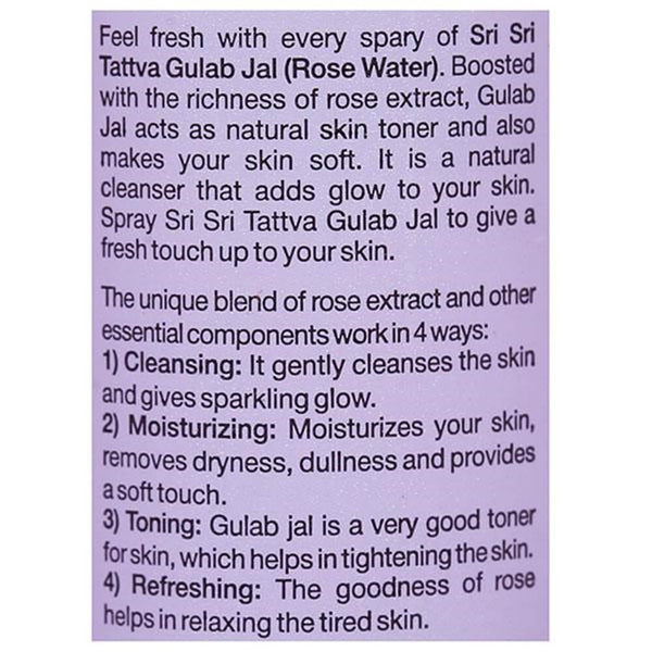 Sri Sri Tattva Gulab Jal is ayurvedic herbal product. It is a natural cleanser that adds glow to your skin. Spray Sri Sri Tattva Gulab Jal to give a fresh touch up to your skin.