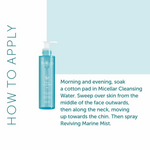 • Use a cotton pad to apply Beautifying Tonic Lotion all over the face and neck. Then spray Reviving Marine Mist onto the skin.