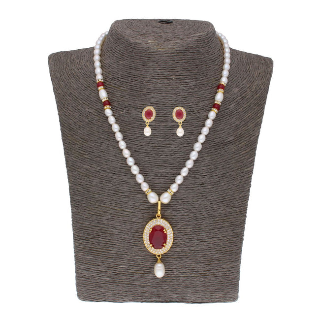 J Pearls Red Drop Set - Real Pearl Jewelry