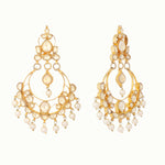 Nuyug 22K Gold Plated Kundan Studded Contemporary Shaped Pearl Drop Chandbalis