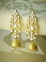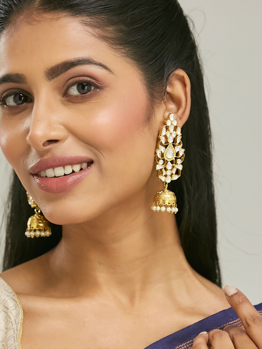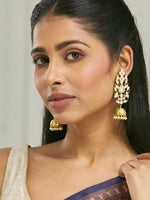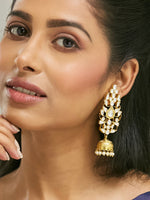 Nuyug 22K Gold-Plated Regal Kundan Stone Studded & Pearl Drop Jhumkas