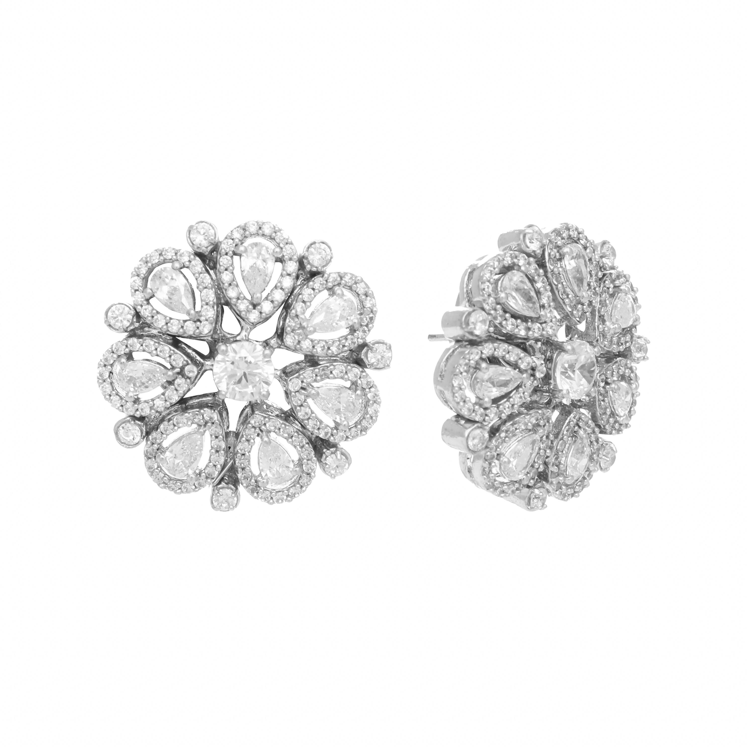 Nuyug Rhodium-Plated Zircon Studded Floral Statement Stud Earrings