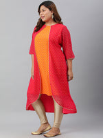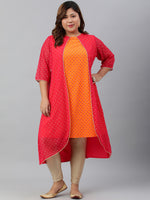 Janasya Women's Orange Poly Crepe Floral Print Festive & Party A-Line With Attached Jacket kurta - Distacart