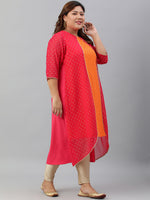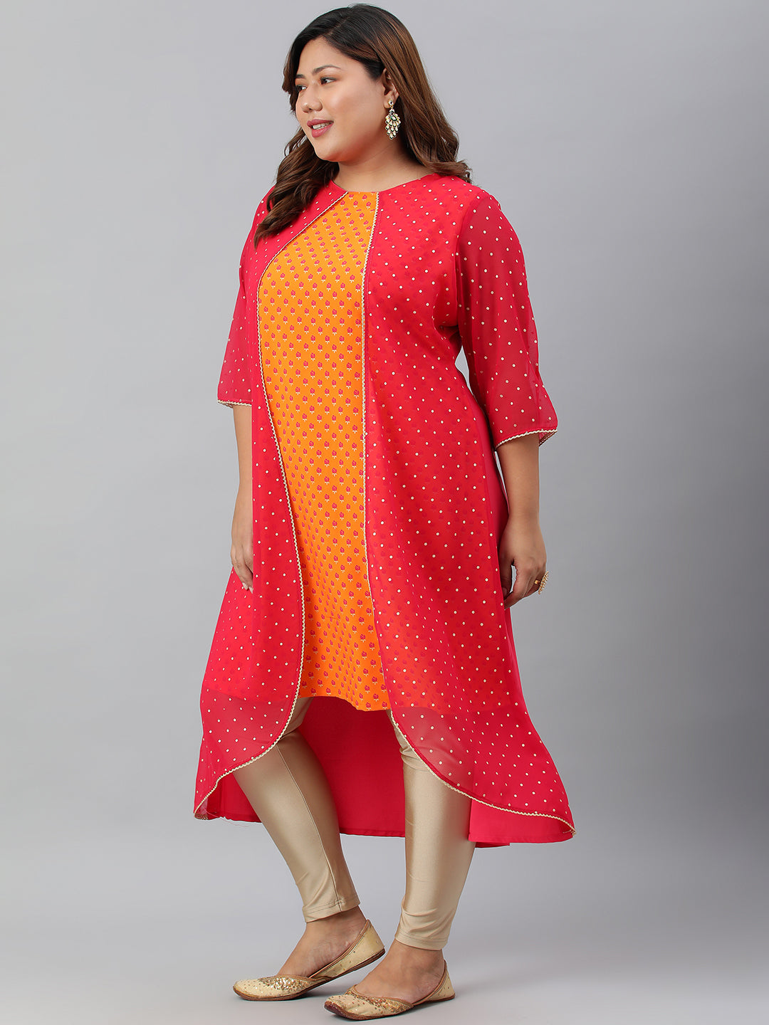 Janasya Women's Orange Poly Crepe Floral Print Festive & Party A-Line With Attached Jacket kurta - 6XL