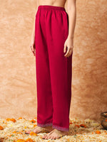 Red embroidered Kurta with Trousers with dupatta
