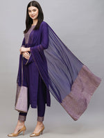 Purple, gold toned yoke design kurta with trousers with dupatta