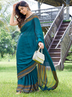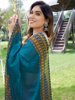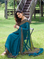 Kalini Turquoise Blue & Brown Solid Printed Border Chiffon Saree