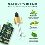 • Neem, known for its anti-aging & acne-fighting properties, works in synergy with Tea Tree Oil, which targets acne-causing bacteria. Bakuchiol, a natural alternative to retinol, smoothens fine lines & improves skin texture, while Salicylic Acid unclogs pores, preventing breakouts. Niacinamide treats blemishes, evens skin tone, & reduces inflammation, making it perfect for oily skin.