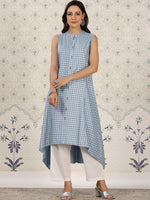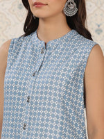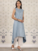 Ode by House of Pataudi Ethnic Motifs Printed Mandrain collar A-Line Kurta Product Details Colour: blue & white  Ethnic motifs printed Man...