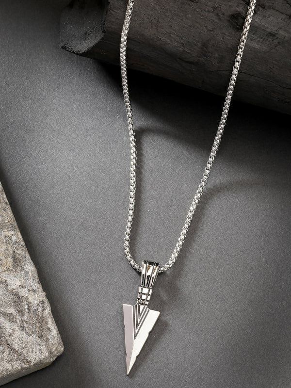 NVR Men's Silver-Plated Arrow-Shaped Pendant With Chain