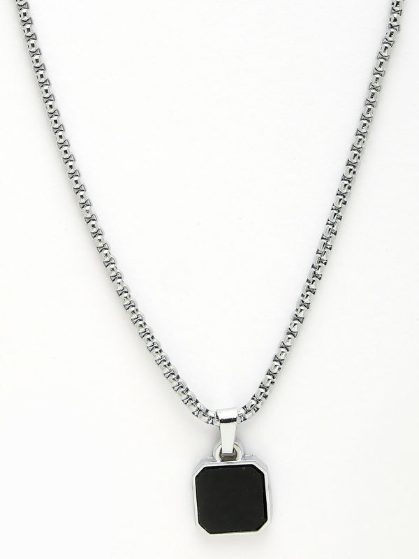 NVR Men's Silver-Plated Artificial Stone Stainless Steel Pendant with Chain