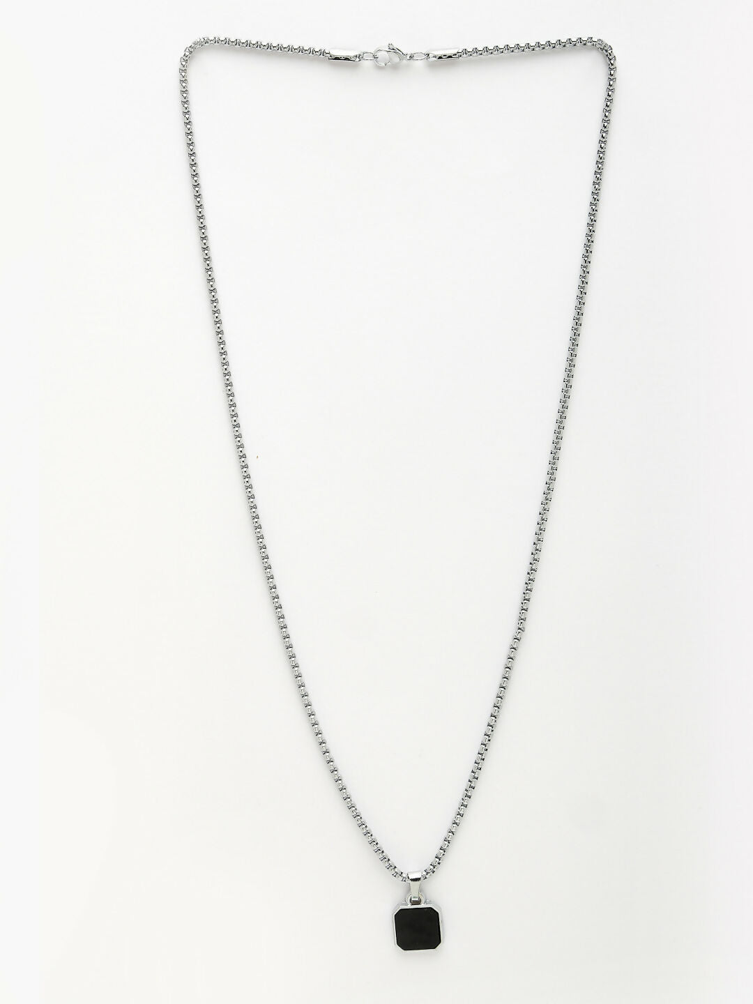 • Style Note: The NVR Men Silver-Plated Artificial Stone Stainless Steel Pendant with Chain combines elegance with a touch of contemporary style. The artificial stone detail adds a refined and sophisticated element to the pendant, making it suitable for both casual and formal occasions. Pair it with a simple t-shirt and jeans for a casual yet polished look, or with a tailored suit for a more formal setting. This pendant with chain effortlessly enhances any outfit with its timeless appeal and subtle luxury.
