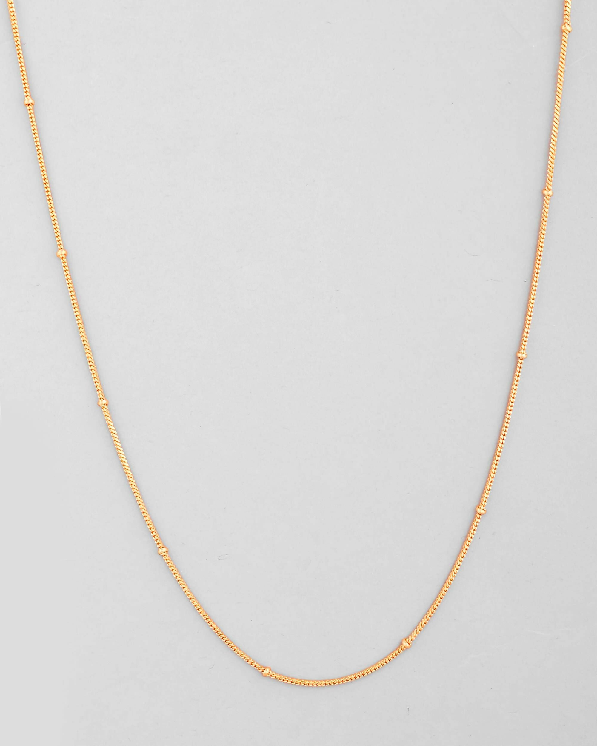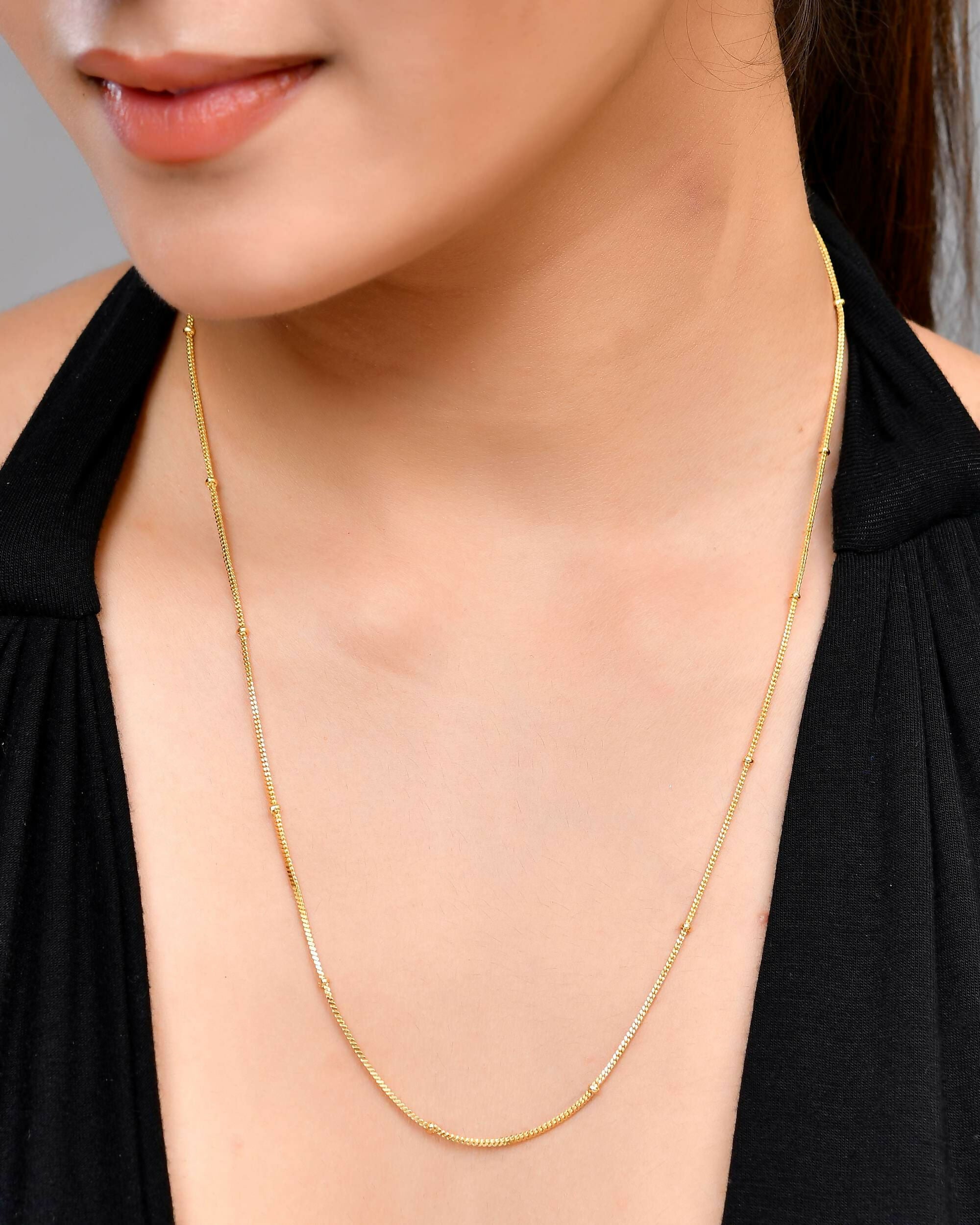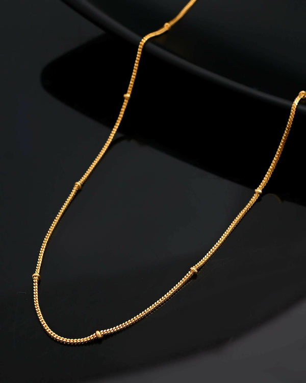 Elevate your elegance with our gold-plated small gold beads chain for women. This delicate piece features a beautiful arrangement of tiny gold beads, creating a subtle yet eye-catching effect. Perfect for layering or wearing alone, it adds a touch of sophistication to any outfit. Ideal for both everyday wear and special occasions, this chain is a must-have accessory for every jewelry collection!
