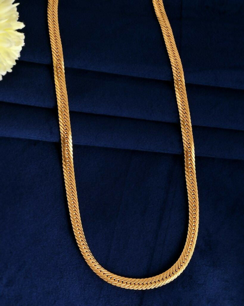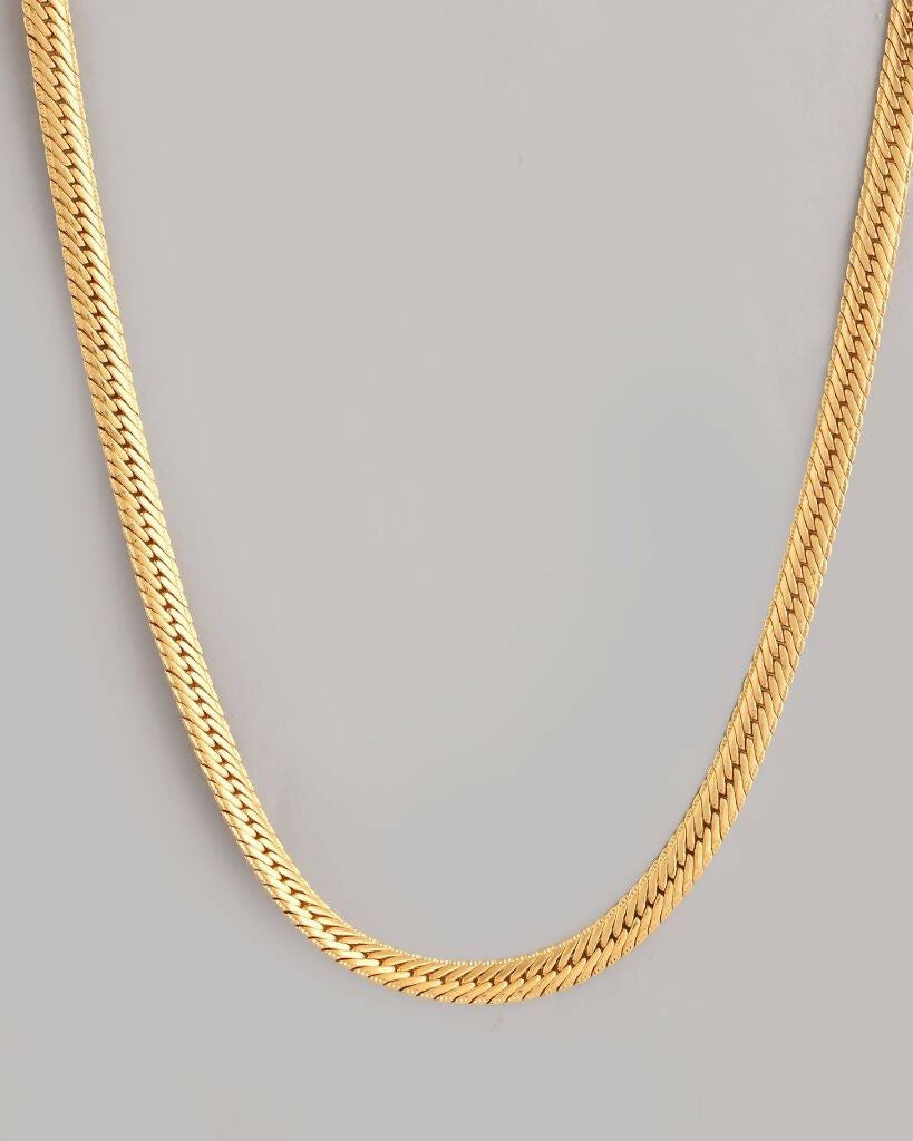 VOJ Gold-Polished Thick Flat Snake ChainDiscover modern elegance with our Gold Plated Thick Flat Snake Chain. This sleek, flat design features a lu...