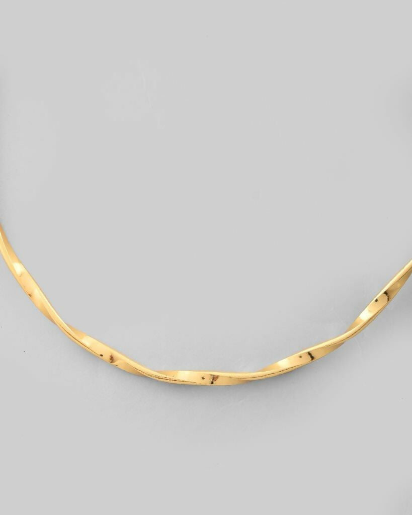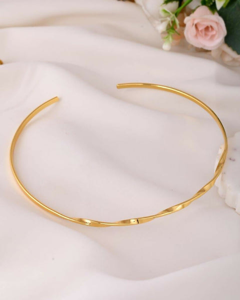 VOJ Gold-Polished Twisted Hasli NecklaceMake a statement with our Gold Plated Twisted Hasli Necklace. This exquisite piece features a beautifully t...