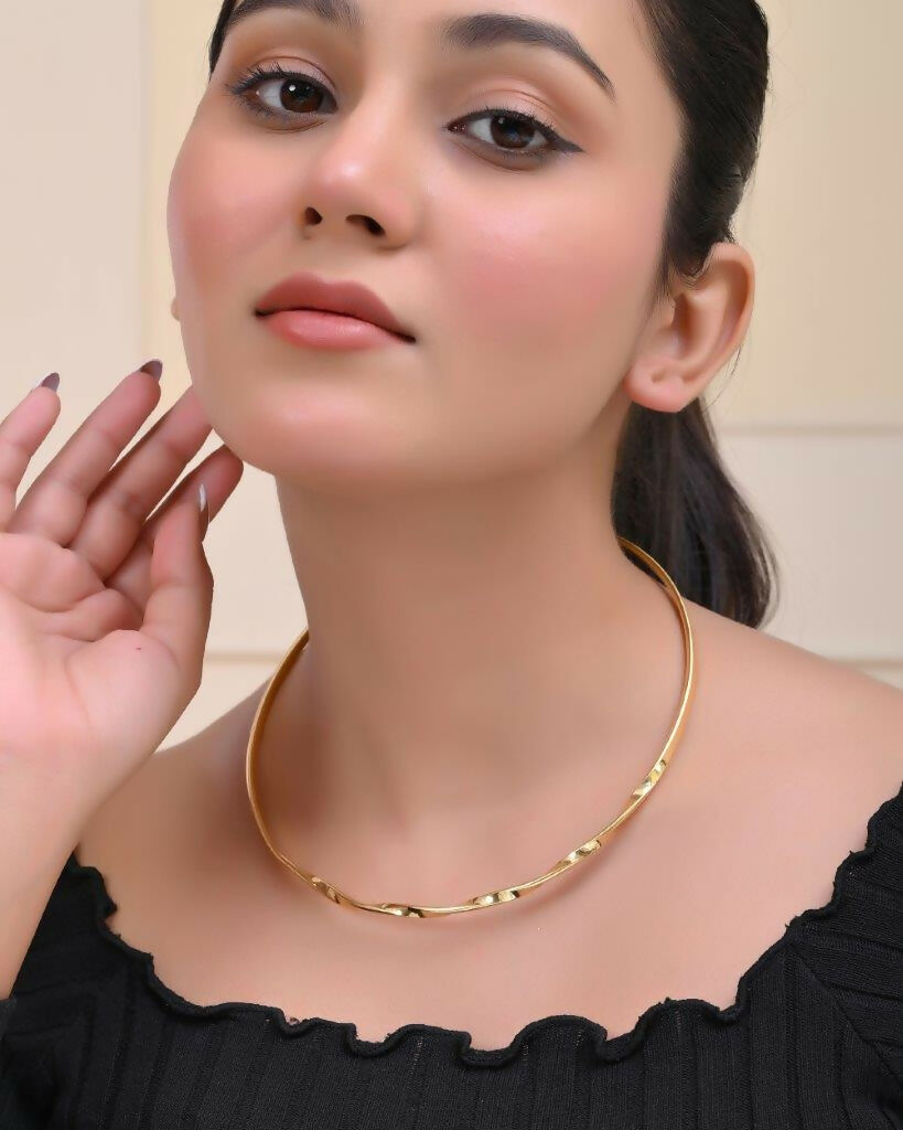 Make a statement with our Gold Plated Twisted Hasli Necklace. This exquisite piece features a beautifully twisted design that adds depth and elegance to any outfit. Crafted with high-quality gold plating, it offers a luxurious shine while remaining lightweight and comfortable. Perfect for both traditional and contemporary looks, this necklace is a must-have accessory for every jewelry lover.