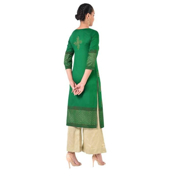 Aniyah Cotton Gold Print Straight Kurta Green : If we were you we would have chosen this brand, now you must be saying in your mind," yeah, sure y...