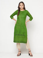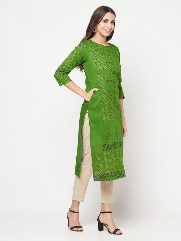 Aniyah Green Cotton Block print straight kurta Wanna Look like Bewitching And Angelic In Just 5 Minutes?? At long last your search is over, you hav...