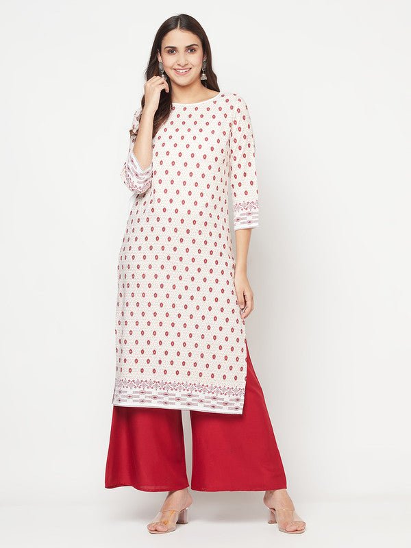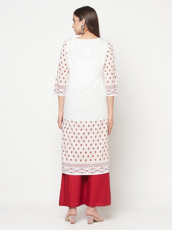 Aniyah Rayon Digital Screen Print White And Red Straight Kurta - S