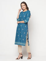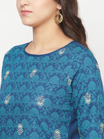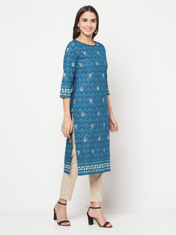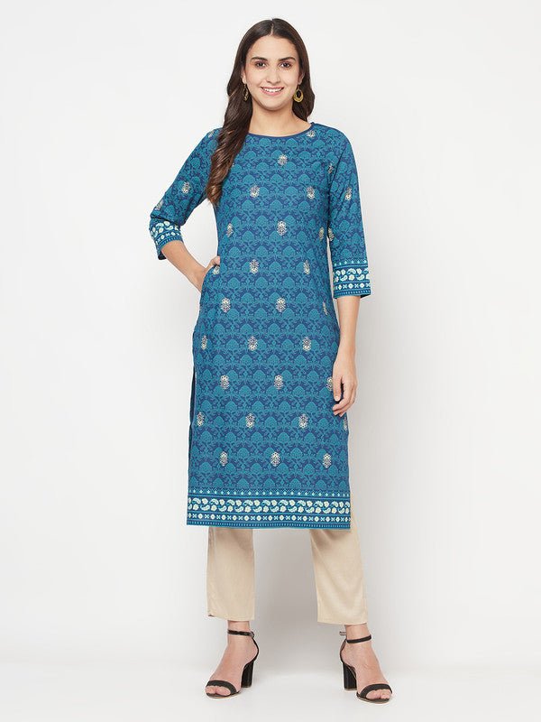 Aniyah Rayon Digital Screen Printed Blue Color Straight Kurta - S
