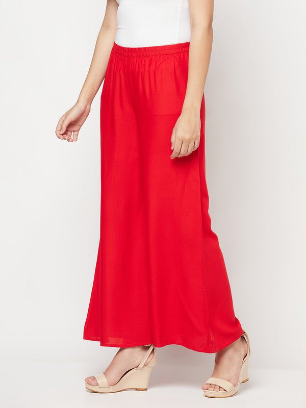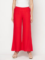 Aniyah Rayon Flared Slip-On Red Palazzo