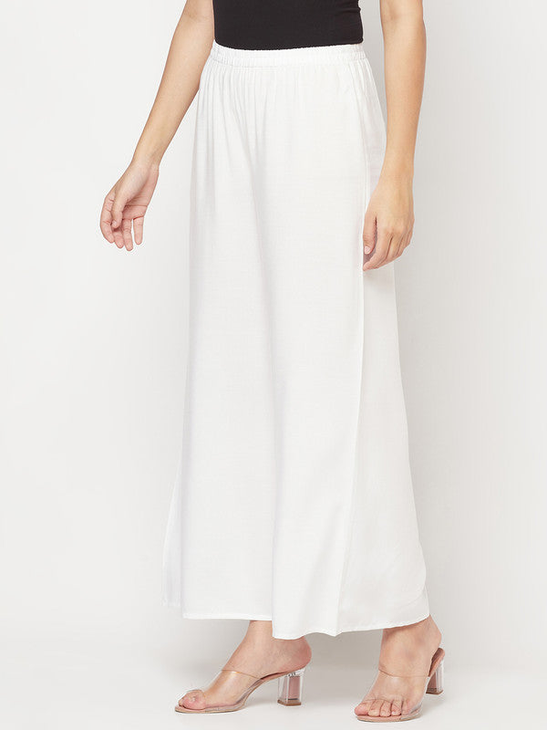 Indian Clothing Aniyah Rayon Flared Slip-On White Palazzo - S
