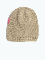 Chutput Kids Woollen Hand Knitted Flower And Animal Detail Cap - Beige - Distacart