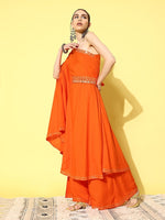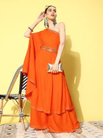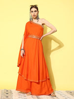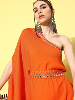 InWeave Women's Orange Oneshoulder Mirror Work Belted Kurta Set