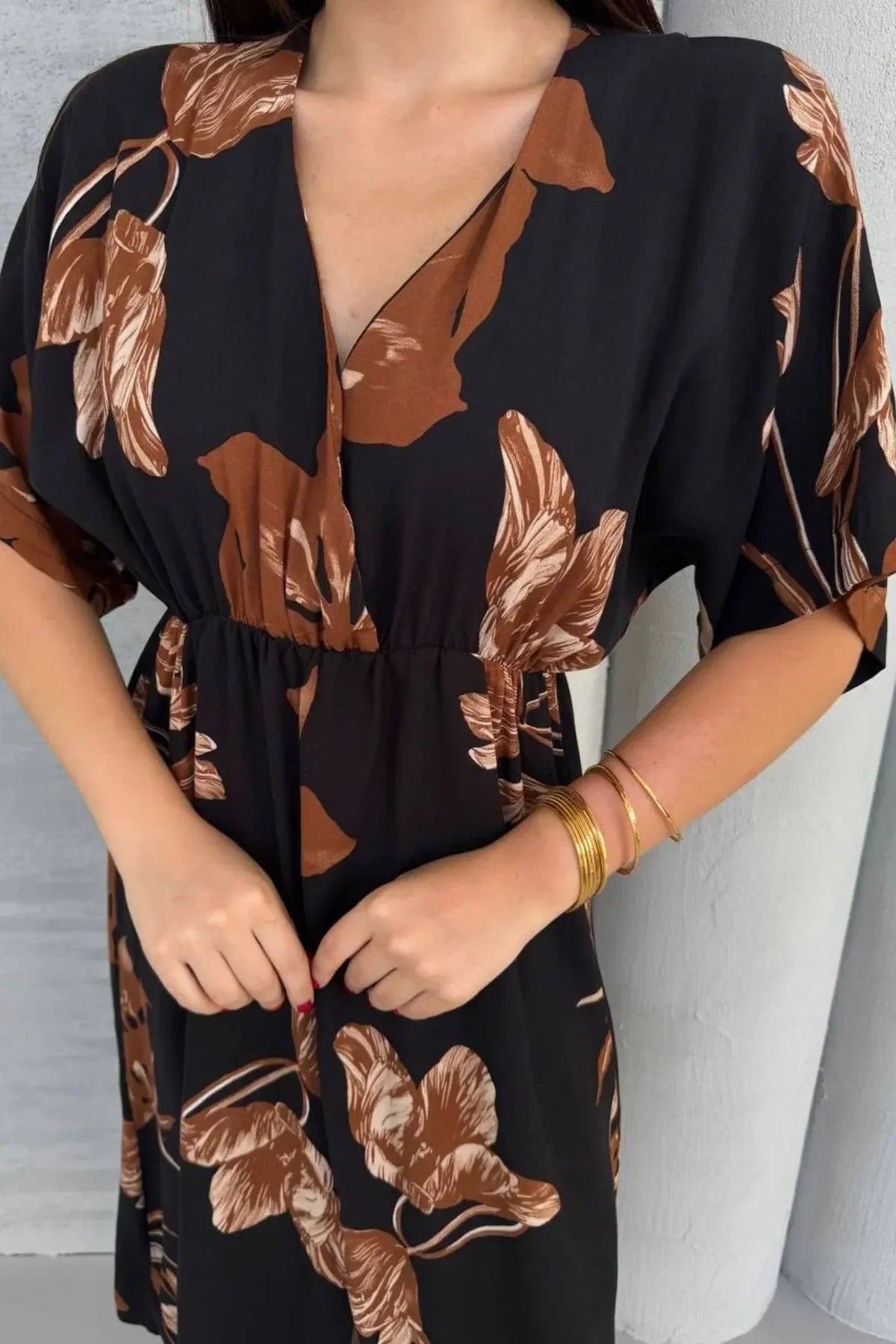 Pimu Front Slit Midi Dresses V-neck Designs For Women Party Wear - Black - S