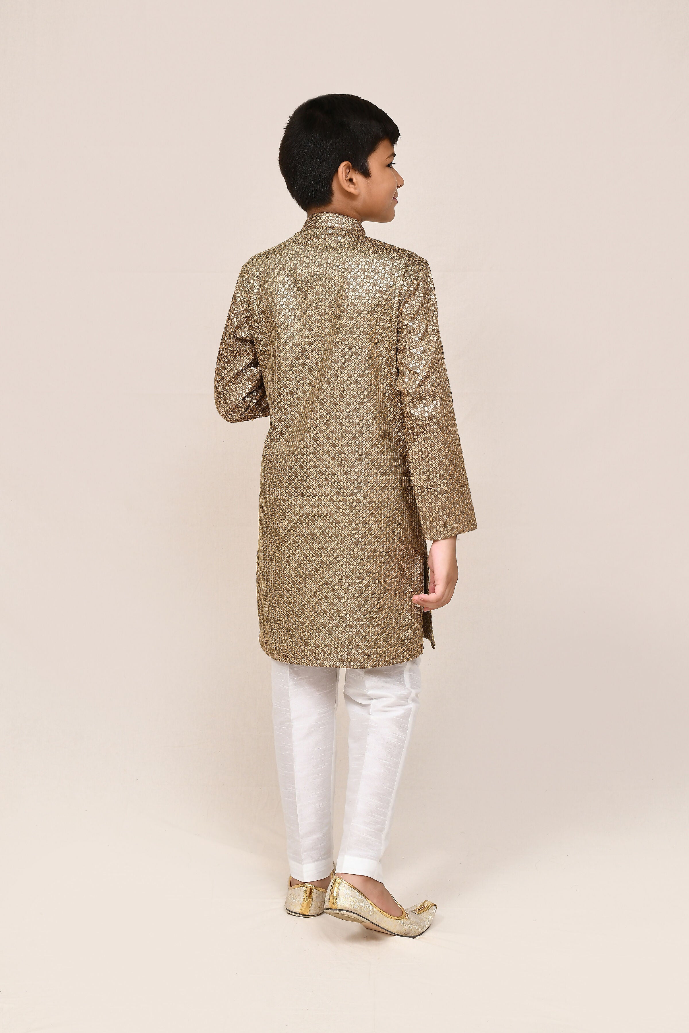 Joban Fashion Satin Cotton Gold Kurta With Straight Fit Pant - 1Y-2Y
