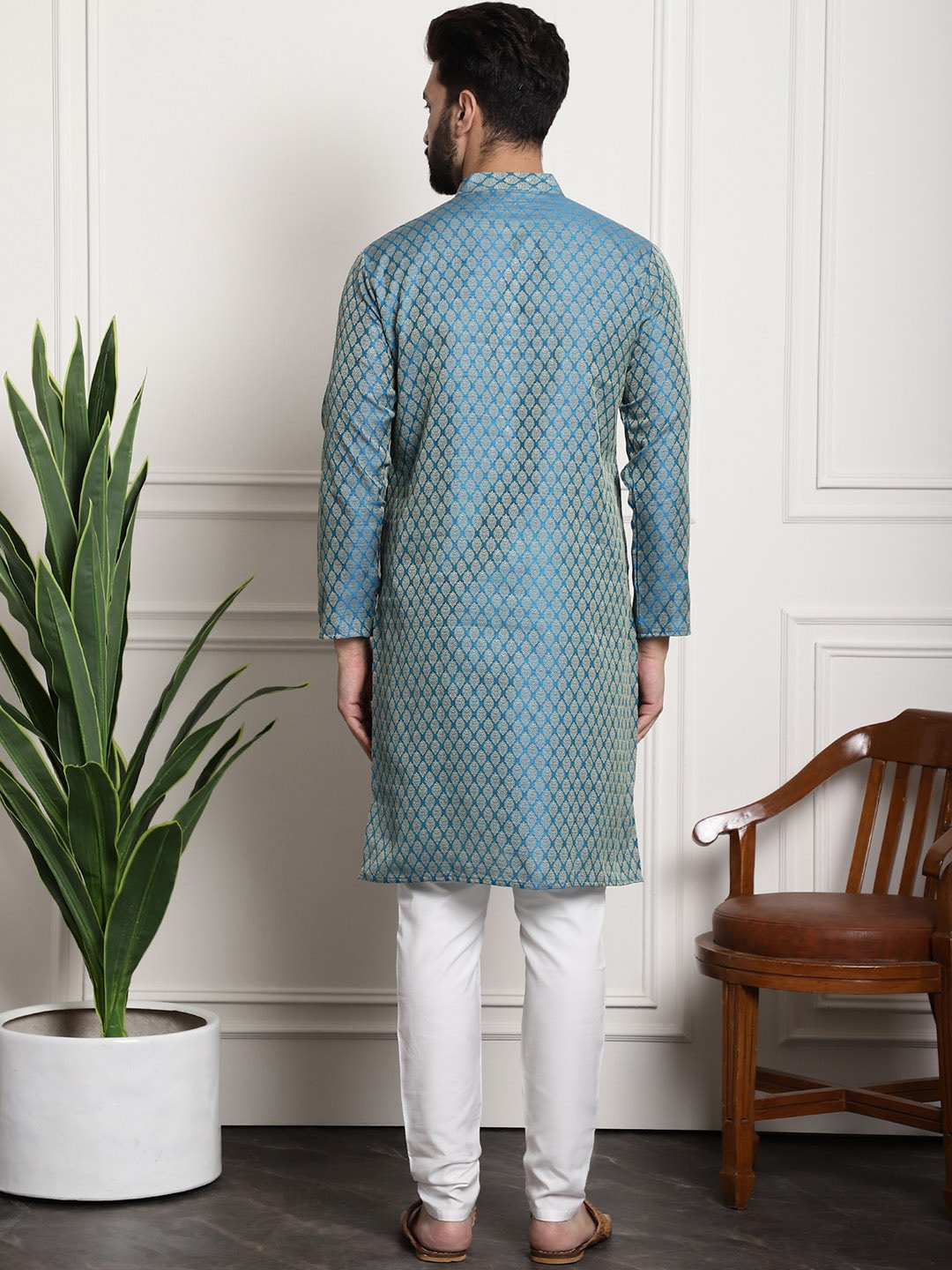 Sojanya Men Blue & Off-White Woven Design Kurta with Churidar - Distacart