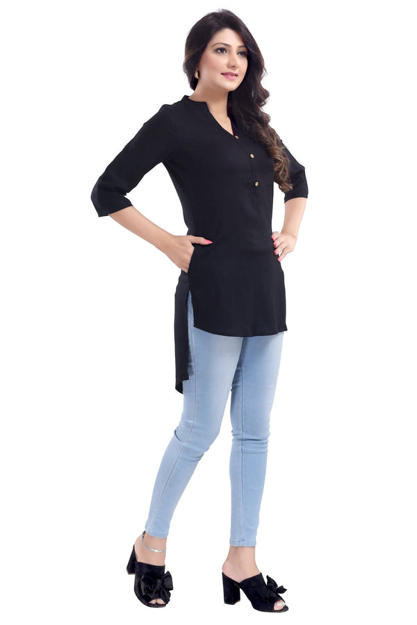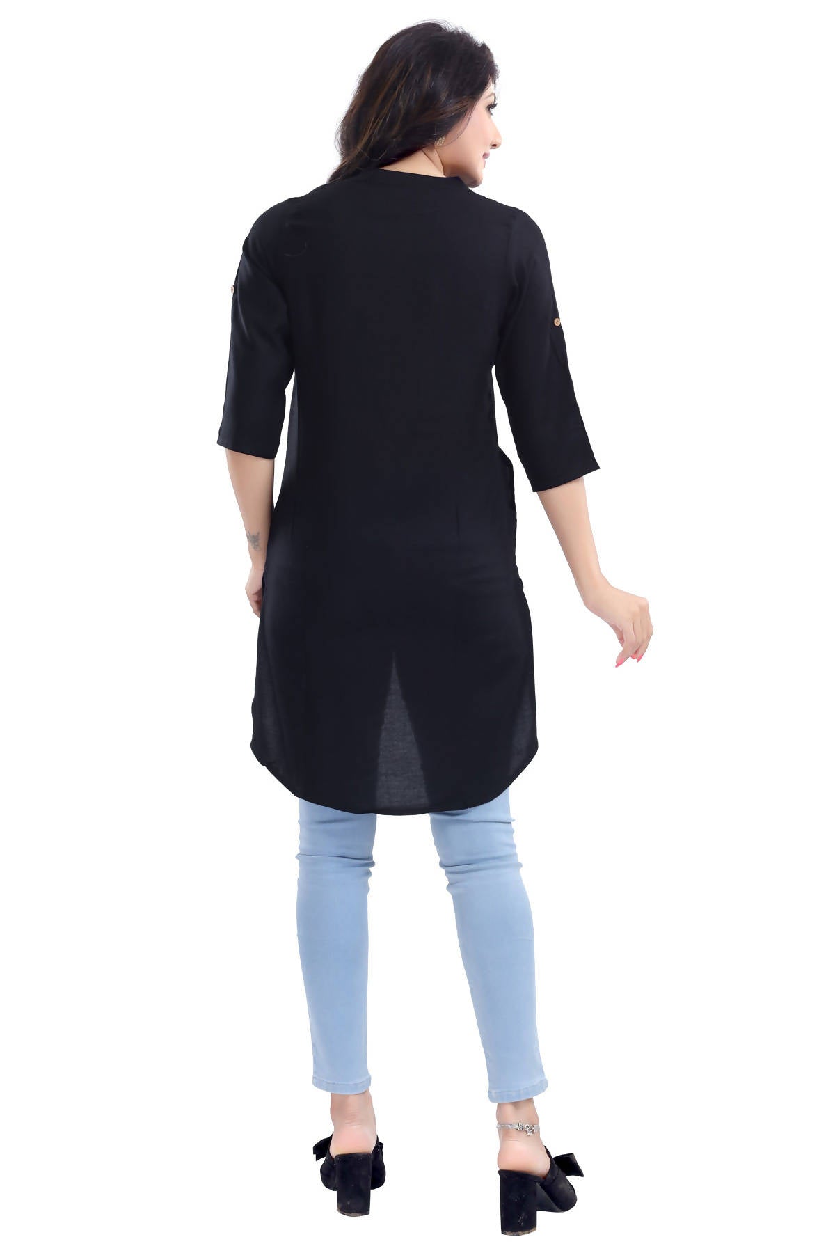 Snehal Creations Beauteous Black Button Down Styled Rayon Kurti For Women - S