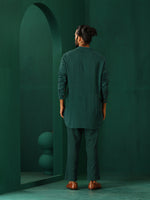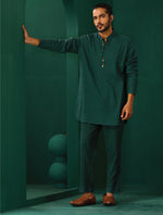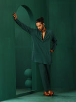 trueBrowns Men's Turquoise Dobby Co-ord SetDescription Missing Dent Co-ord set with regular fit and full sleeves. The product has 2 pockets. The pr...