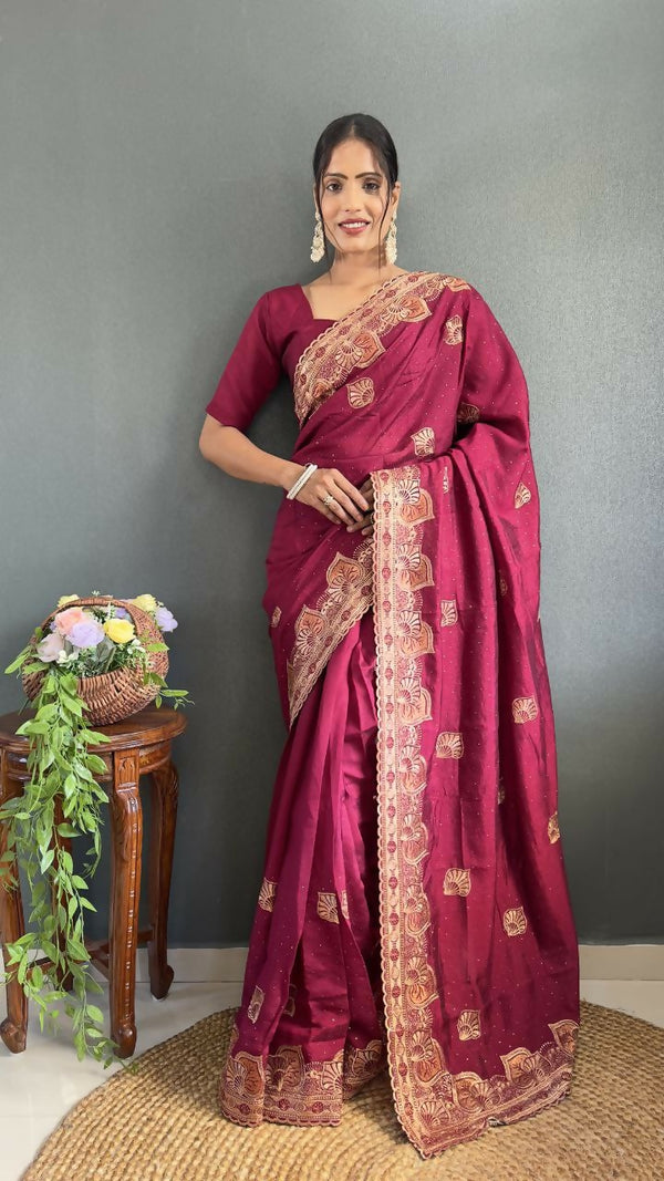 Saree Work- Zari work with DMC Swarovski work & Cut Work Border