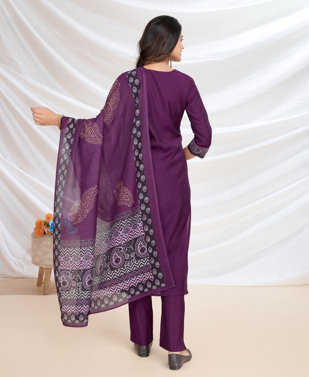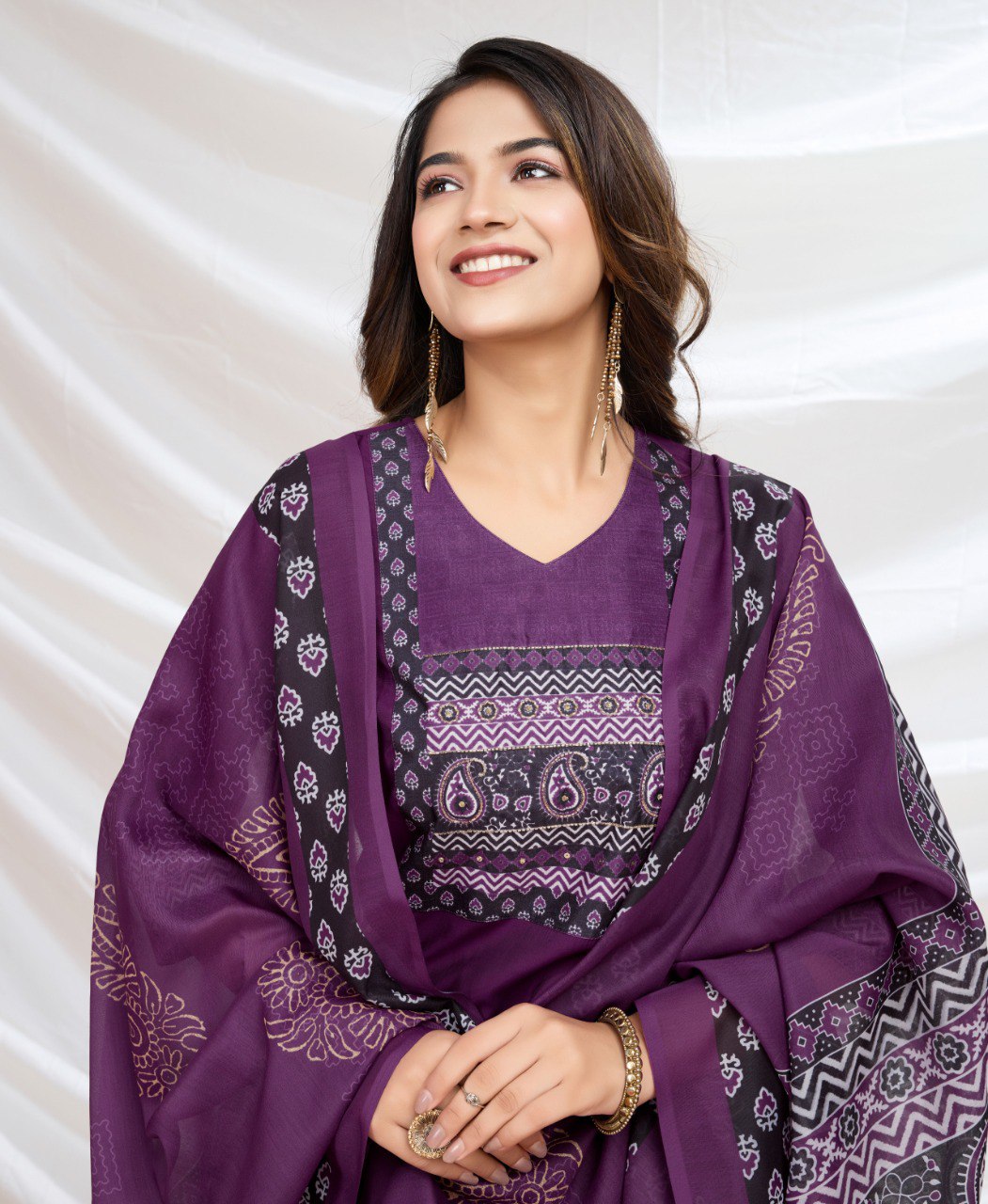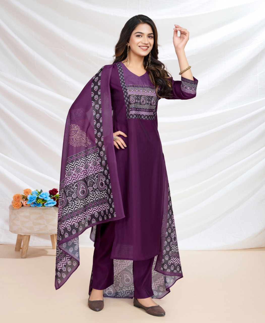 Prazu Fashion Purple Viscose Silk Printed Kurta SetAbout the Product: GENDER : Female Colour : Purple Work/Pattern : Printed Fabric : Viscose Silk ...