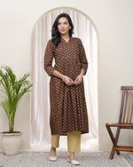 Vaasva Brown Boonta Cotton Printed Gathered Kurti
