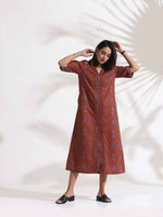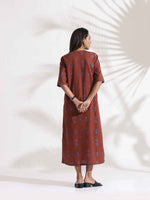 • Elevate your style with this brown cotton printed oversized dress. The fit makes it the perfect go-to for lazy days, offering easy slip-on wear and effortless comfort, ideal for breezy summer days.