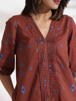 trueBrowns Brown Cotton Print pleated Dress - XS