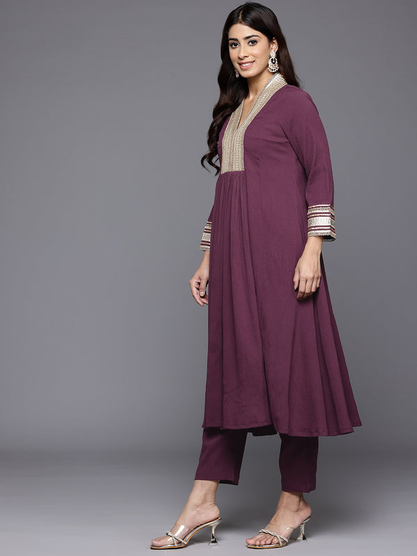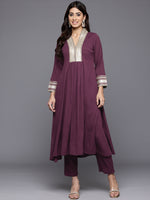 Varanga Women Purple Zari Lace Embellished Yoke A-Line Kurta Set - S