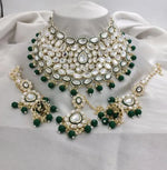 Jewel City Royal Kundan Choker Set with Emerald Green Beads - Traditional Indian Wedding Jewelry Set with Earrings and Tikka